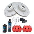 - 2009-2010 Subaru Forester Front Semi-Metallic Premium G-Coated Performance Brake Pad & Rotor Kit with Calipers AM Autoparts AM-1817562370