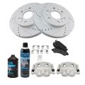 - 2005-2006 GMC Sierra 1500 Front with Rear Drum Brakes Semi-Metallic Premium G-Coated Performance Brake Pad & Rotor Kit with Calipers AM Autoparts AM-1877368472
