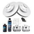 - 2004-2010 Toyota Sienna Front Semi-Metallic Premium G-Coated Brake Pad & Rotor Kit with Calipers AM Autoparts AM-2351084324