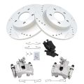 - 2009-2013 Mazda 3 MazdaSpeed Rear Semi-Metallic Premium G-Coated Performance Brake Pad & Rotor Kit with Calipers AM Autoparts AM-2758896764