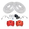 - 2006-2007 Pontiac G6 L4 2.4L Front with 296 mm Diameter Front Rotors with 4 Wheel ABS Brakes Ceramic Premium G-Coated Performance Brake Pad & Rotor Kit with Performance Calipers & Hoses AM Autoparts AM-2959079136