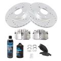 - 2003 Ford Mustang Base Model V6 3.8L Front Semi-Metallic Premium G-Coated Performance Brake Pad & Rotor Kit with Calipers AM Autoparts AM-3103031863