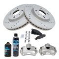 - 2008-2011 Ford Focus Front Driver & Passenger Side Semi-Metallic Premium G-Coated Performance Brake Pad & Rotor Kit with Calipers AM Autoparts AM-3332308958