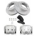 - 2005-2012 Ford F350 Super Duty Truck 4 Wheel Drive Front with Single Rear Wheels (SRW) Semi-Metallic Premium G-Coated Performance Brake Pad & Rotor Kit with Calipers AM Autoparts AM-3510896379