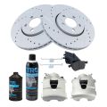 - 2000-2005 VW Jetta L4 1.8L Front with 280mm Diameter Front Rotors with Front Female Oval Pad Wear Sensor Connector Ceramic Premium G-Coated Performance Brake Pad & Rotor Kit with Calipers AM Autoparts AM-3728115527