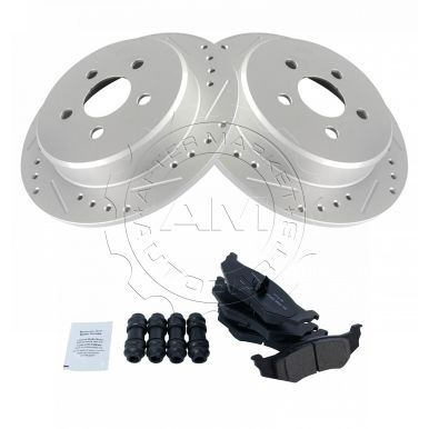 - 1996-2006 Chrysler Sebring Convertible Rear Ceramic Premium G-Coated Performance Brake Pad & Rotor Kit AM Autoparts AM-3771881544