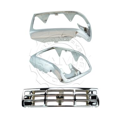 - 1992-1997 Ford F350 Truck 3 Piece Grille & Headlight Bezel Kit AM Autoparts AM-3127391055