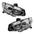 • 2016 Honda Civic Driver & Passenger Side 2 Piece Headlight Set with Halogen Headlights AM Autoparts AM-4017553946