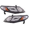 - 2006-2008 Honda Civic Hybrid Driver & Passenger Side 2 Piece Headlight Set AM Autoparts AM-25463719