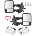 - 2007-2014 Ford F150 Truck Driver & Passenger Side 2 Piece with Heated Spotter Glass Smoked Lens Turn Signal & Clearance Light Memory Power-Folding Manual-Telescoping Towing Mirror Set with Chrome Mirror Caps with Textured Black Mirror Caps AM Autoparts AM-712524008